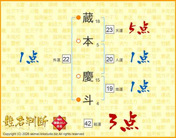 蔵本慶斗さんの天運は23画の5点!