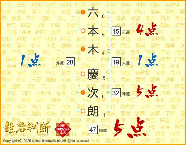 六本木慶次朗さんの総運は47画の5点!