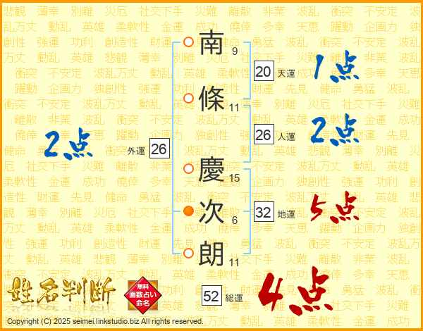南(9画)條(11画) 慶(15画)次(6画)朗(11画)