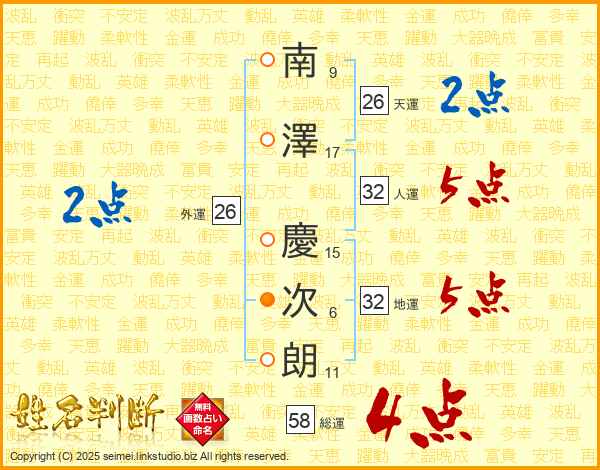 南澤慶次朗さんの総運は58画の4点!