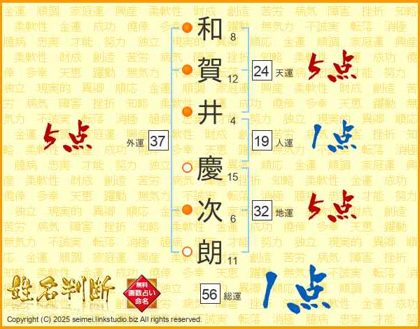 和(8画)賀(12画)井(4画) 慶(15画)次(6画)朗(11画)