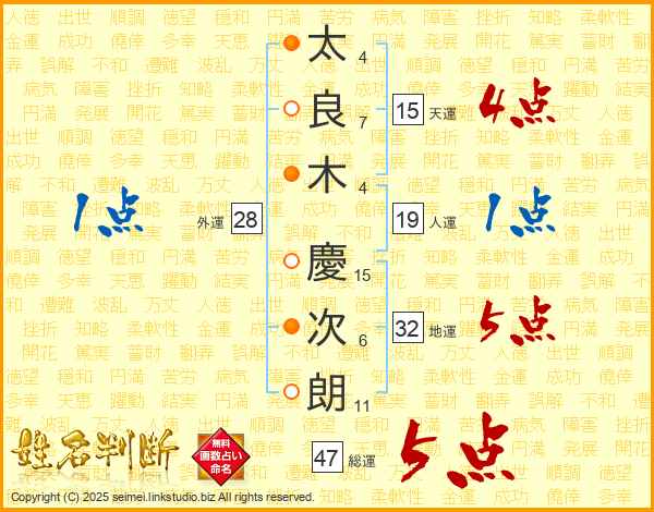 太良木慶次朗さんの総運は47画の5点!