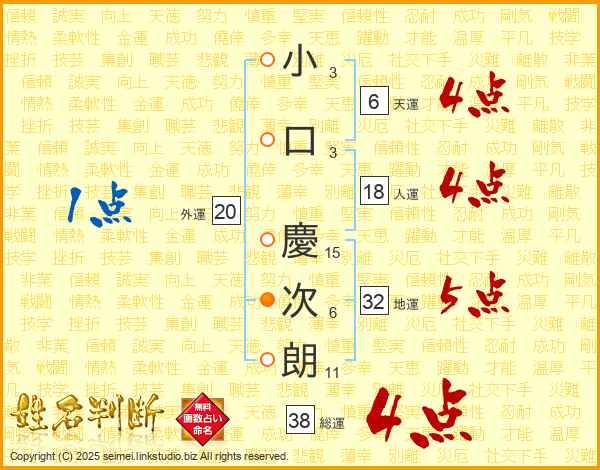 小(3画)口(3画) 慶(15画)次(6画)朗(11画)