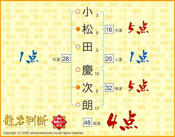小(3画)松(8画)田(5画) 慶(15画)次(6画)朗(11画)