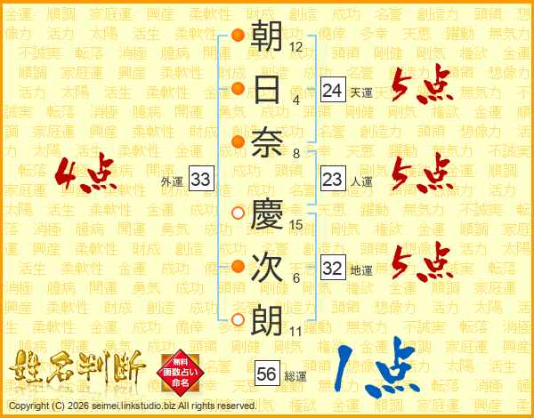 朝日奈慶次朗さんの外運は33画の4点!