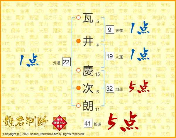 瓦井慶次朗さんの地運は32画の5点!