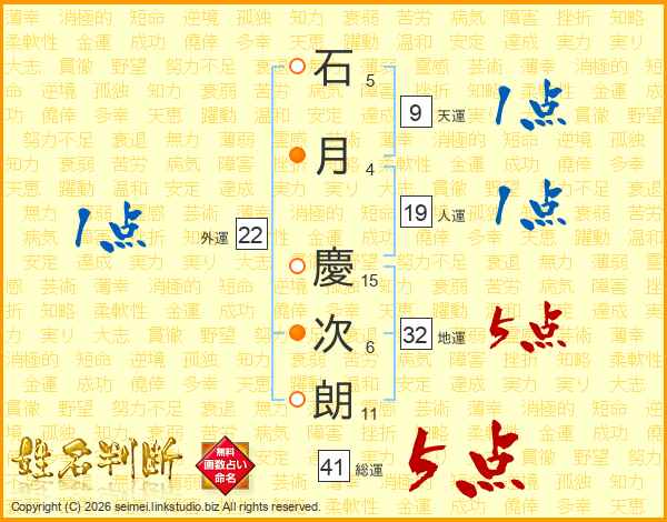 石月慶次朗さんの総運は41画の5点!
