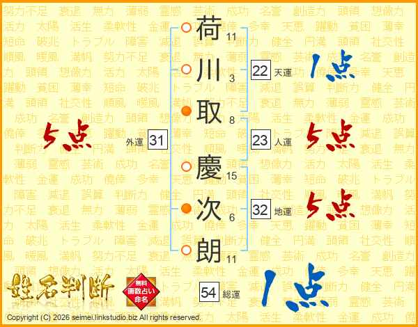 荷川取慶次朗さんの外運は31画の5点!