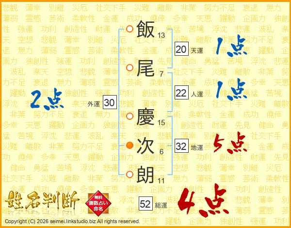 飯尾慶次朗さんの総運は52画の4点!