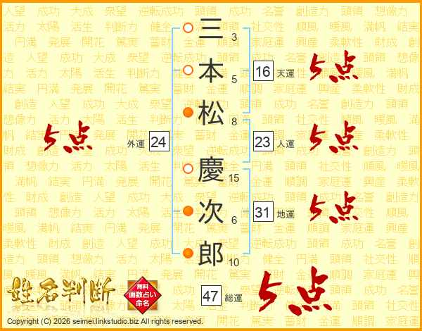 三本松慶次郎さんの総運は47画の5点!