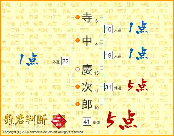 寺(6画)中(4画) 慶(15画)次(6画)郎(10画)
