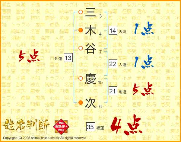 三(3画)木(4画)谷(7画) 慶(15画)次(6画)