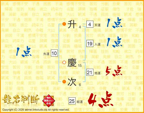 升慶次さんの総運は25画の4点!