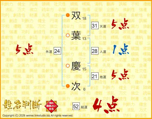 双葉慶次さんの総運は52画の4点!