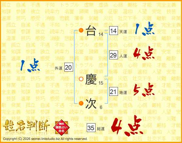 台慶次さんの人運は29画の4点!