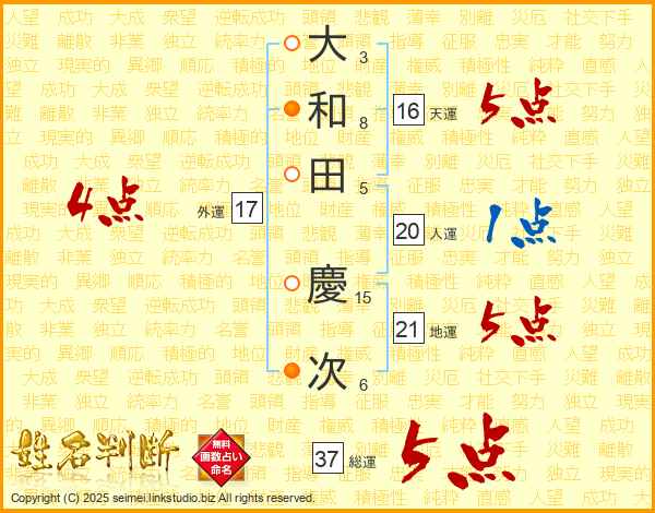 大和田慶次さんの総運は37画の5点!