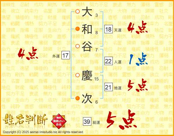 大(3画)和(8画)谷(7画) 慶(15画)次(6画)