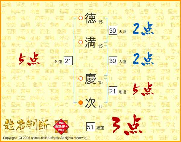 徳満慶次さんの外運は21画の5点!
