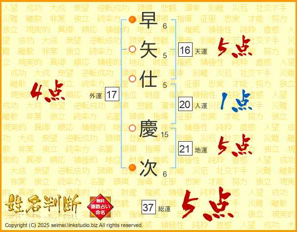 早(6画)矢(5画)仕(5画) 慶(15画)次(6画)