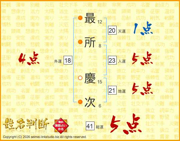 最所慶次さんの総運は41画の5点!