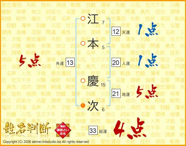 江本慶次さんの総運は33画の4点!