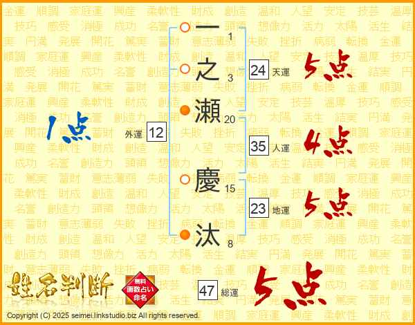 一之瀬慶汰さんの総運は47画の5点!