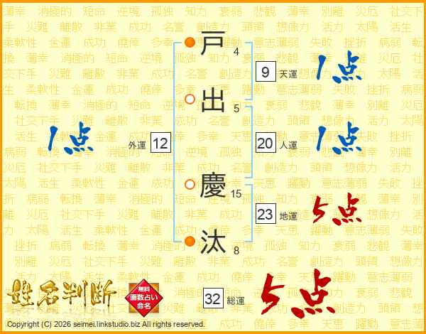 戸出慶汰さんの総運は32画の5点!