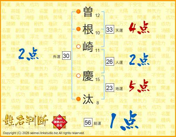 曽根崎慶汰さんの総運は56画の1点!