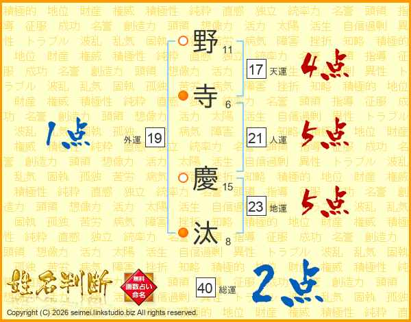 野寺慶汰さんの天運は17画の4点!