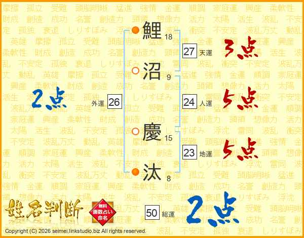 鯉沼慶汰さんの天運は27画の3点!