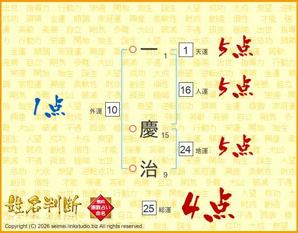 一慶治さんの総運は25画の4点!