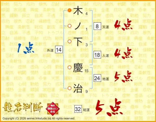 木ノ下慶治さんの総運は32画の5点!