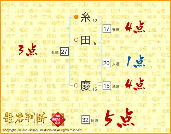 糸田慶さんの総運は32画の5点!