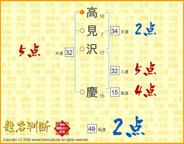 高見沢慶さんの総運は49画の2点!