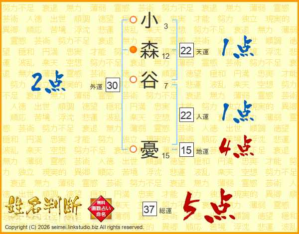 小森谷憂さんの人運は22画の1点!