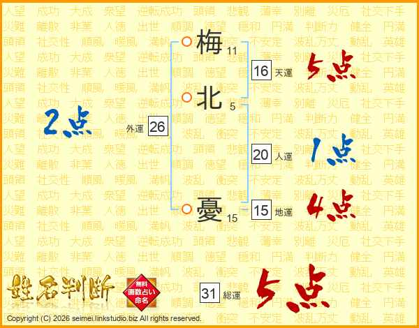 梅北憂さんの天運は16画の5点!