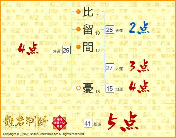 比留間憂さんの天運は26画の2点!