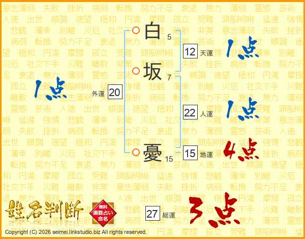 白坂憂さんの総運は27画の3点!