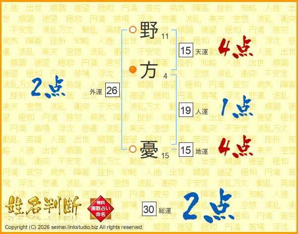 野方憂さんの総運は30画の2点!