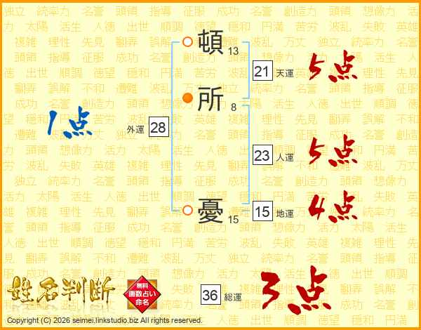 頓所憂さんの天運は21画の5点!