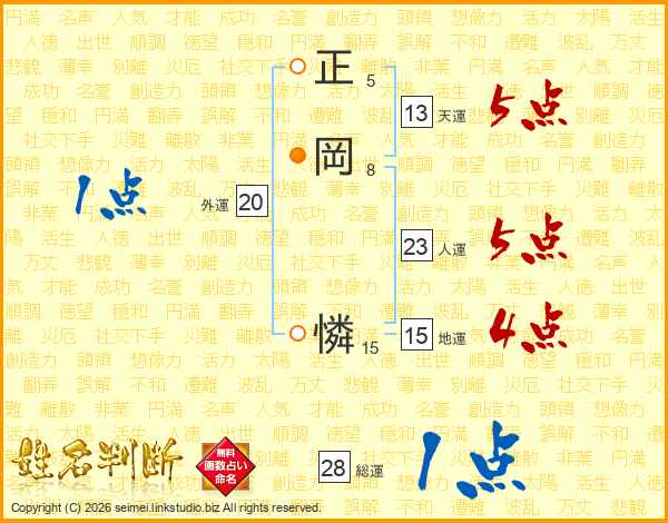 正岡憐さんの人運は23画の5点!