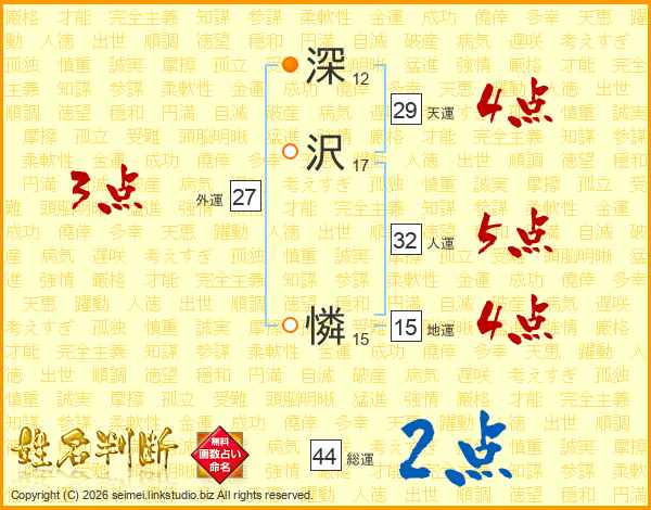 深沢憐さんの総運は44画の2点