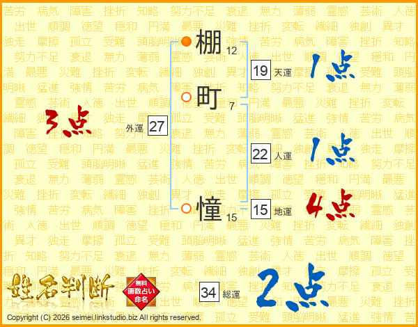 棚町憧さんの総運は34画の2点!