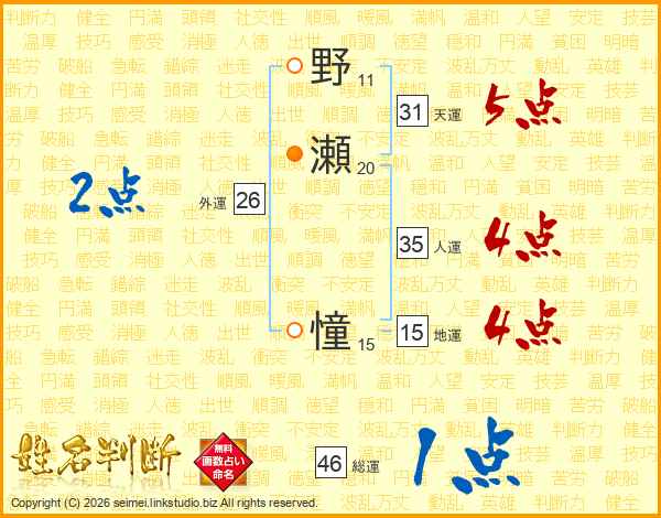 野瀬憧さんの総運は46画の1点!