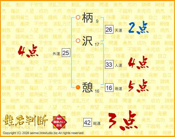 柄沢憩さんの人運は33画の4点!