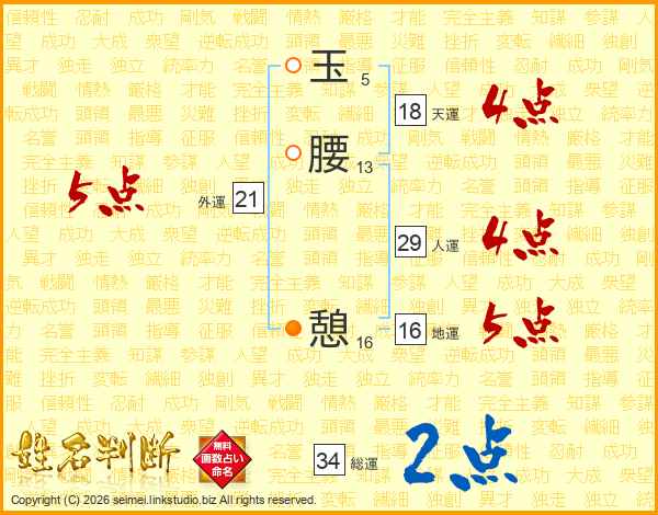 玉腰憩さんの外運は21画の5点!