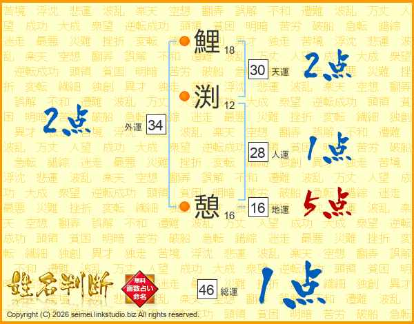鯉渕憩さんの天運は30画の2点!