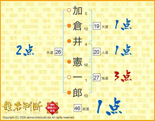 加(5画)倉(10画)井(4画) 憲(16画)一(1画)郎(10画)