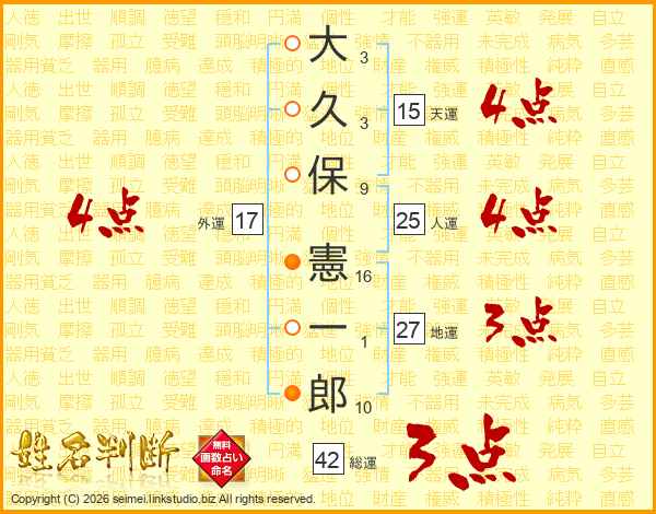 大久保憲一郎さんの天運は15画の4点!