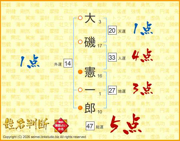 大磯憲一郎さんの総運は47画の5点!